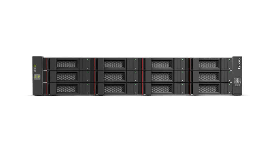 Благодаря таким качествам, как мощность и адаптивность, Lenovo Storage D1212 справится с любыми рабочими нагрузками. Вы можете использовать дисковую полку D1212, содержащую до 12 3,5-дюймовых накопителей, в качестве простого дискового массива, а затем последовательно подключить до 8 дополнительных полок через интерфейс SAS (с помощью нескольких портов). Один интерфейс поддерживает до 96 накопителей.